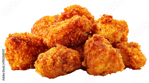 A pile of crispy fried chicken nuggets on transparent background
