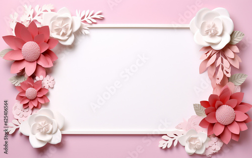 A pink and white paper photo frame with flowers on it