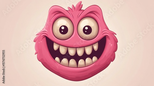 A pink cartoon monster with big eyes and large teeth