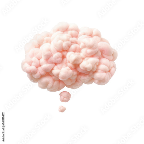 A pink cloud shaped like a thought bubble with a tail of smaller bubbles. isolate on white background