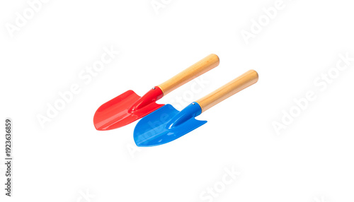 A plastic toy shovel is placed on a transparent background