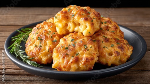 A plate of ghost pepper mac and cheese bites on a black metal tray under low key lighting leaving room for promotional text