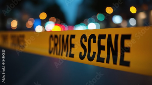 A police crime scene with a yellow tape surrounding it, justice and law, professional photography