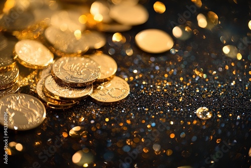 A price list elegantly positioned amid scattered gold coins, enhancing the rich visual appeal of the arrangement