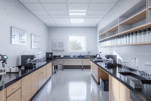 A pristine and well-equipped laboratory featuring modern scientific equipment and ample space