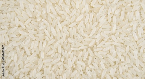 A pristine expanse of white rice grains, showcasing their delicate texture and uniform shape, isolated on white background, ideal for culinary or agricultural themes