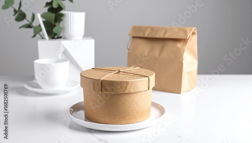 A pristine white ceramic plate, elegantly round with a smooth glossy finish, sits on a rustic wooden table, casting soft shadows in warm light.
