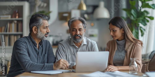 A professional Indian businessman leads a meeting with colleagues discussing finance strategies.