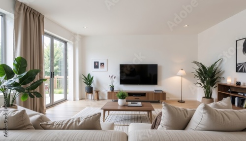 a professional smart home setup with embedded biometric access control units, in a minimalist scandinavian layout, used for startup pitch decks in smart living sectors.