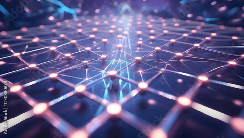 a professional-grade visual representation of a blockchain network, comprising a mesh of glowing, interconnected blocks