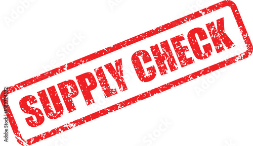 A prominent red grunge rubber stamp displaying the clear words SUPPLY CHECK diagonally on a crisp white backdrop