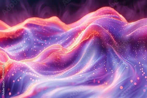 A purple and orange wave with a lot of sparkles