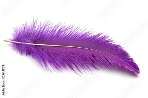 A purple feather, isolated on a white background, high-resolution photograph, studio lighting