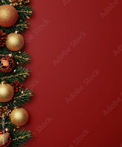 A radiant Christmas tree adorned with shimmering gold ornaments stands proudly against a vibrant red backdrop, evoking festive cheer and holiday spirit.