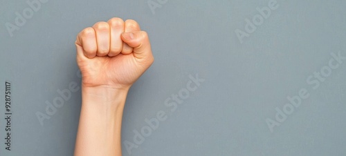 A raised fist symbolizing strength, unity, and resistance, set against a neutral gray background.