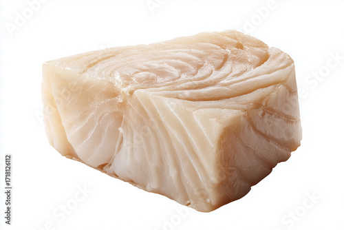 A raw halibut steak, 3D render, isolated on a white background.