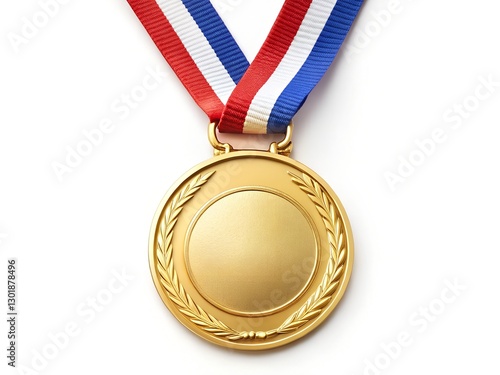 A real gold medal isolated on free white background with a lot of text area - winner copy space concept