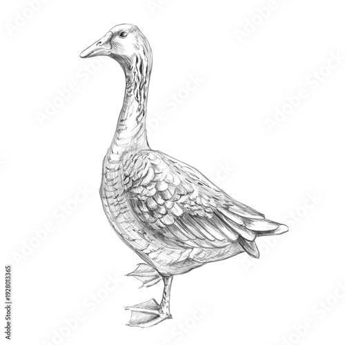 A realistic pencil drawing of a goose. This isolated illustration is perfect for farms, delicatessens, restaurants, and any nature or agricultural-themed design.