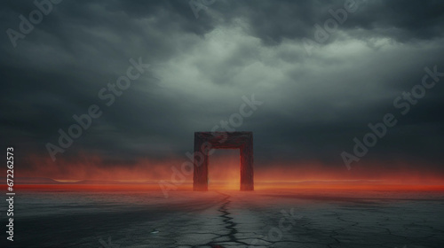 A Red Door Frame in the Middle of a Barren Wasteland With Copy Space
