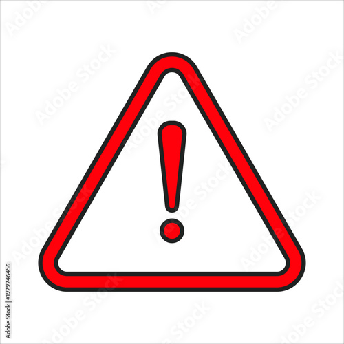 A red triangle with an exclamation mark inside representing a warning sign. isolated on white background