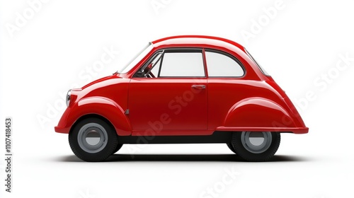 A red vintage car showcased in profile view, emphasizing its unique design and compact shape.