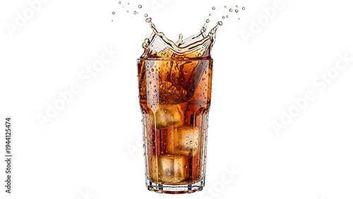 A refreshing glass of fizzy cola drink with bubbles spilling over the rim against a plain background