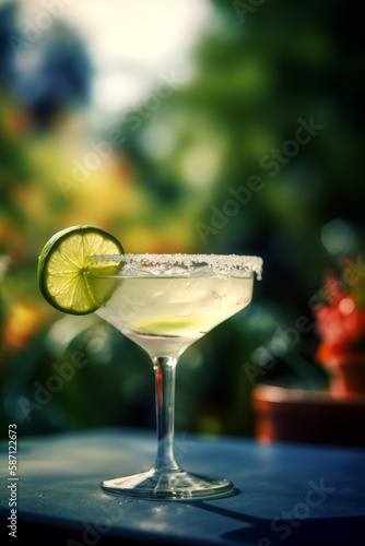 A refreshing margarita with lime. Generative AI.