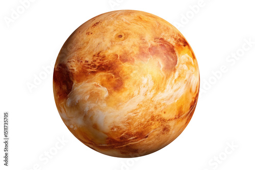 A rendered image of a planet with swirling orange and white clouds against a black background space