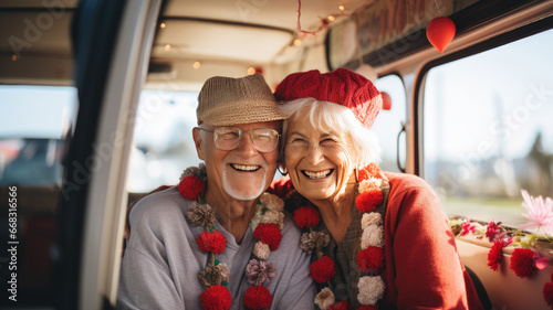 A retired couple in love celebrate Valentine's Day on a campervan trip.