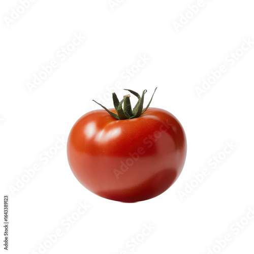 A ripe red tomato with a green stem isolated on transparent background for culinary and design projects