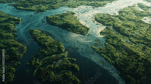 a river and green islands