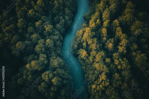 A river runs through a forest with trees on both sides