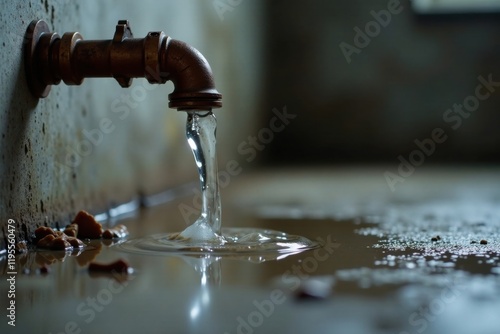 A Rustic Metal Faucet Dispenses a Stream of Refreshing Water into a Shallow Basin