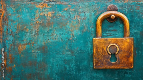 A rusty padlock on a blue wooden door