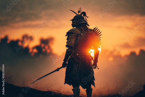 a samurai standing at sunset, generative ai