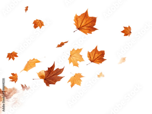 A scattering of autumn leaves in various shades of orange and brown against a black background scene