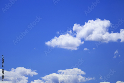 A scenery of clear blue sky with soft and fluffy white cloud in spring time with copy space for background