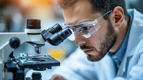 A scientist looking into a microscope in a laboratory setting