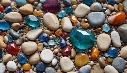A sea of stones: a colorful mosaic of pebbles and gems