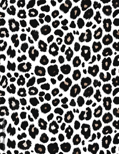 A seamless illustration showing a close-up of a leopard print. The design has black and light brown spots on a white background