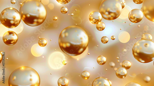 A seamless pattern with few golden balls, 3d rendering, motion blurring effect, soft lighting, minimalistic design
