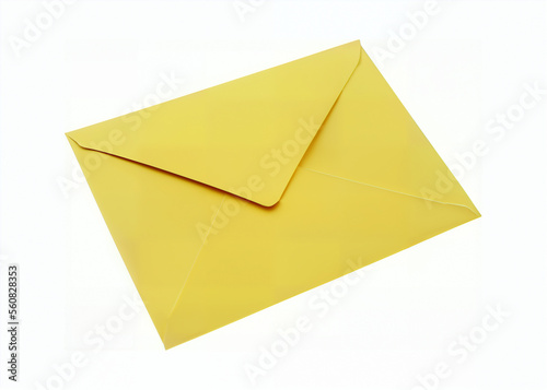 A semi-closed yellow envelope for the old traditional mail postage shipping. Angled illustration.