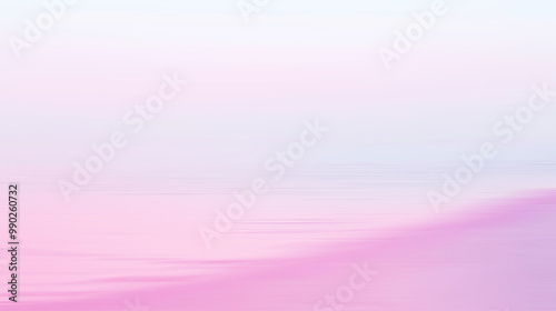 a serene and surreal landscape where the sky meets a vast pink salt flat bordered by gentle slopes. The scene is bathed in a soft dawn light, creating a tranquil glow. The pastel colors and minimalist