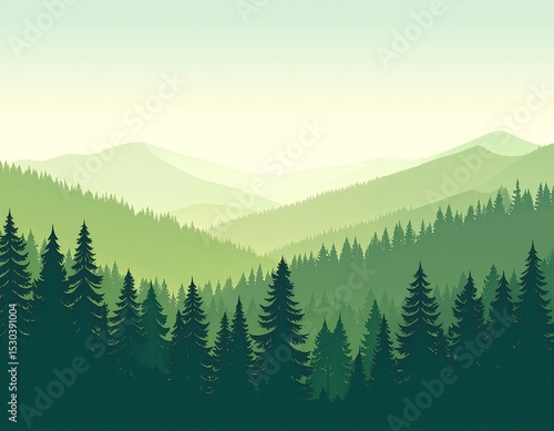 A serene forest scene featuring tall, lush green trees, vibrant wildflowers, and majestic mountains in the background, under a clear blue sky.