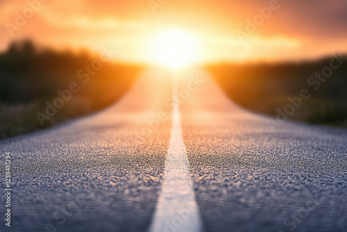 A serene road leads toward a vibrant sunset, surrounded by nature, symbolizing journey and hope.