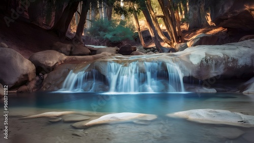 A Serene Waterfall Nestled in a Dense Forest Setting