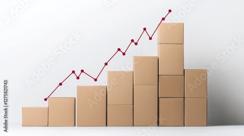A series of cardboard boxes stacked on top of each other with a red arrow pointing upwards. The boxes are arranged in a way that they form a graph, with the boxes representing data points