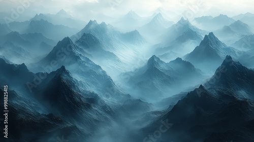 A series of mountain ridges fading into the distance,