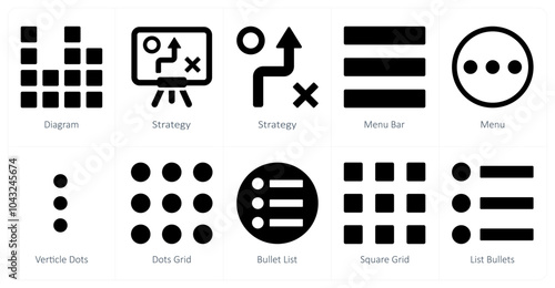 A set of 10 mix icons as diagram, strategy, menu bar