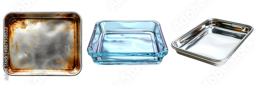A set of 3 Trays on a transparent background, kitchen items, equipment, utensils, dining room, Galley, cooking, Gastronomy, nutrition, utensils, png file, cut off bg, alpha channel